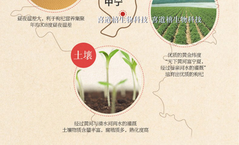 喜道禧(寧夏)生物科技有限公司前期,從2009年開(kāi)始進(jìn)行有機(jī)枸杞種植,喜道禧前身公司已投資600多萬(wàn)元,采用土地流轉(zhuǎn)、公司加農(nóng)戶合約等形式在中寧、涇源等地建立有機(jī)枸杞種植基地1336畝。